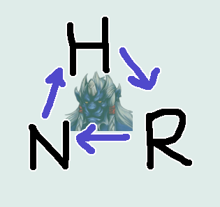 So English h becomes Al Bhed r, Al Bhed n becomes English r, and so on. You can remember this using the word horn. I heard some Ronso once bullied one of their clansmen by calling him "hornless". But they say that particular Ronso became the leader of the tribe in the end, so I suppose he had the last laugh.
